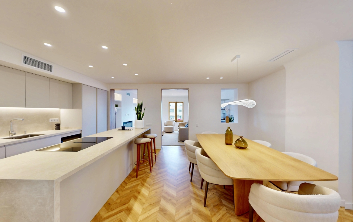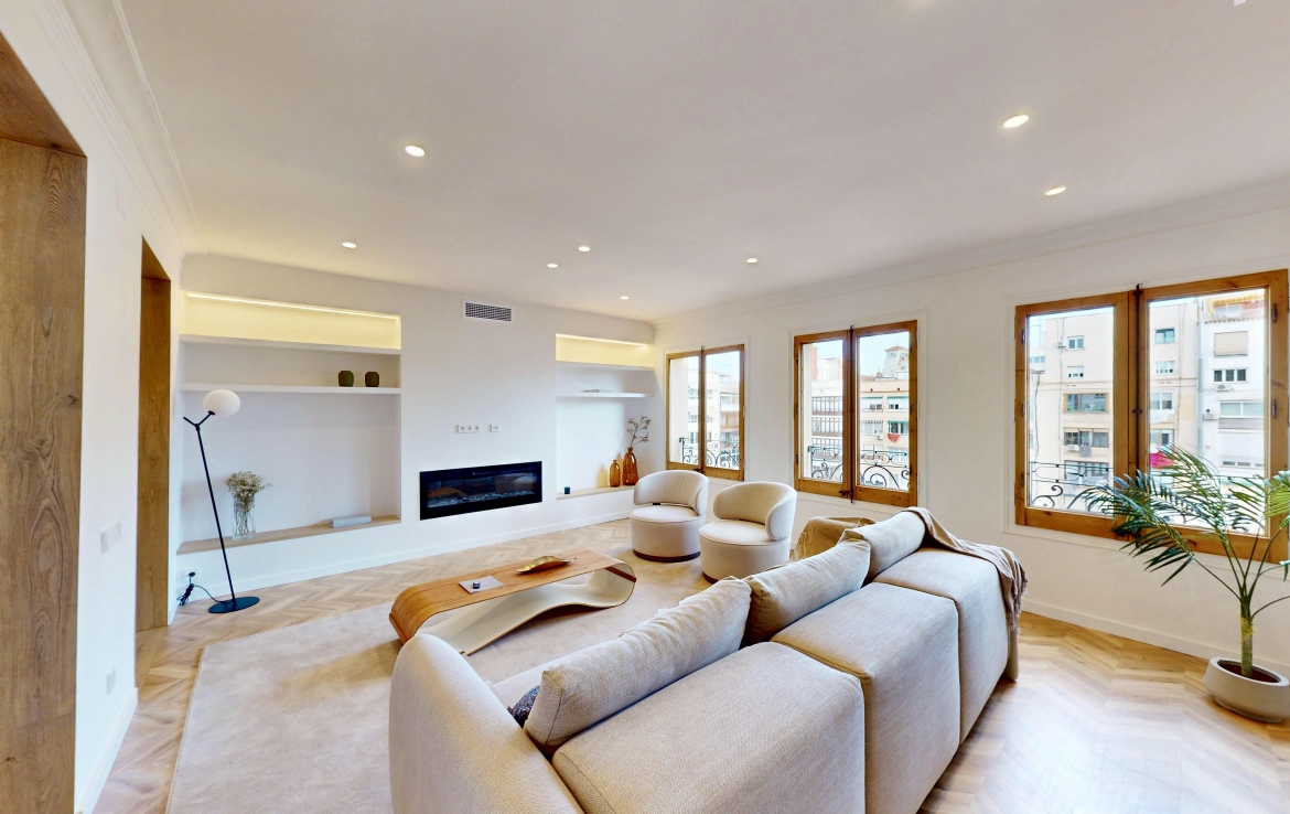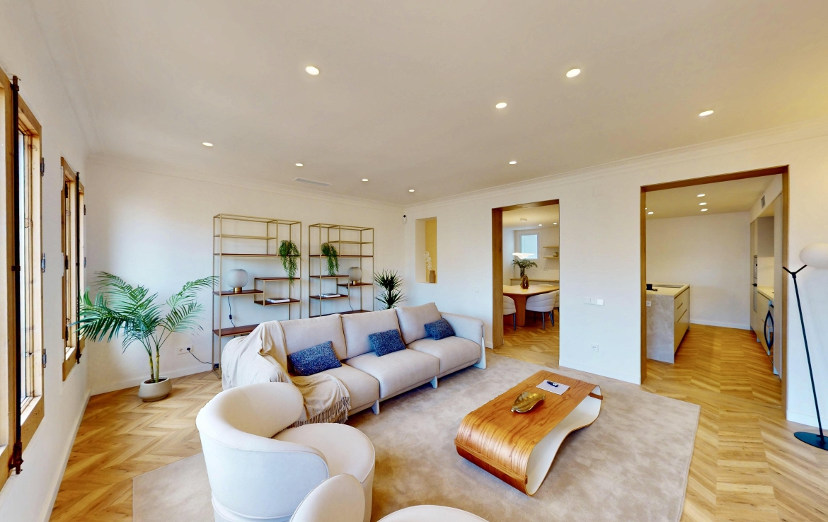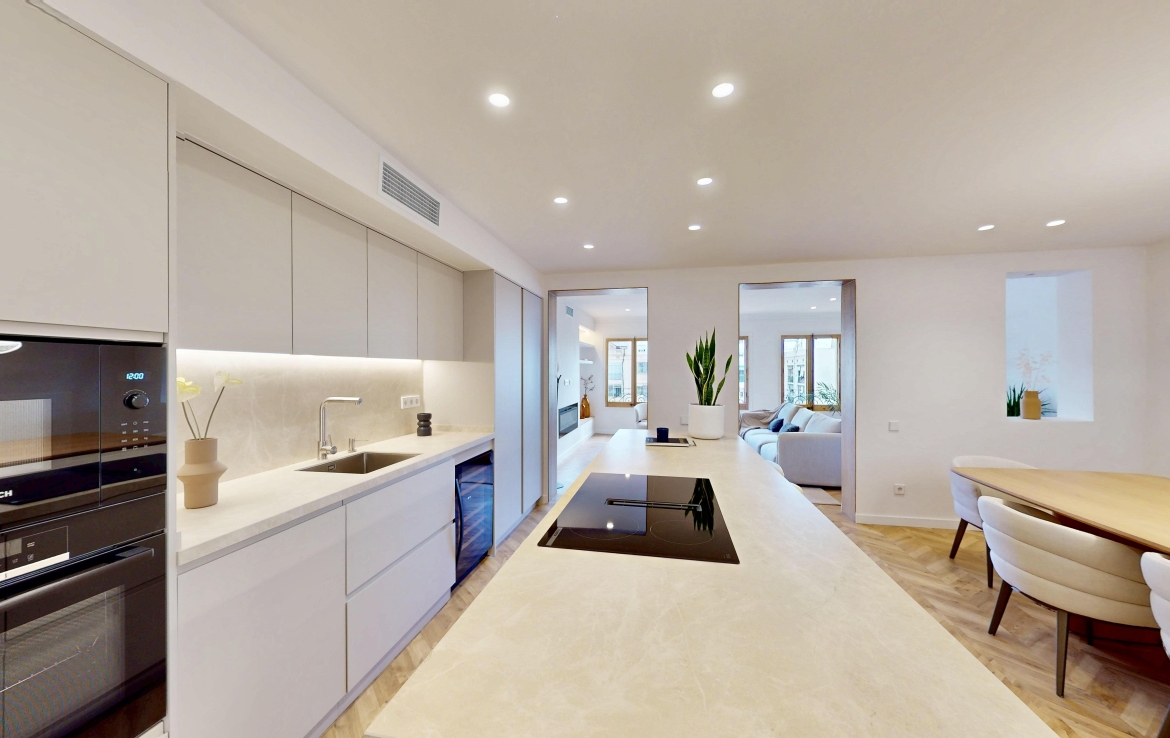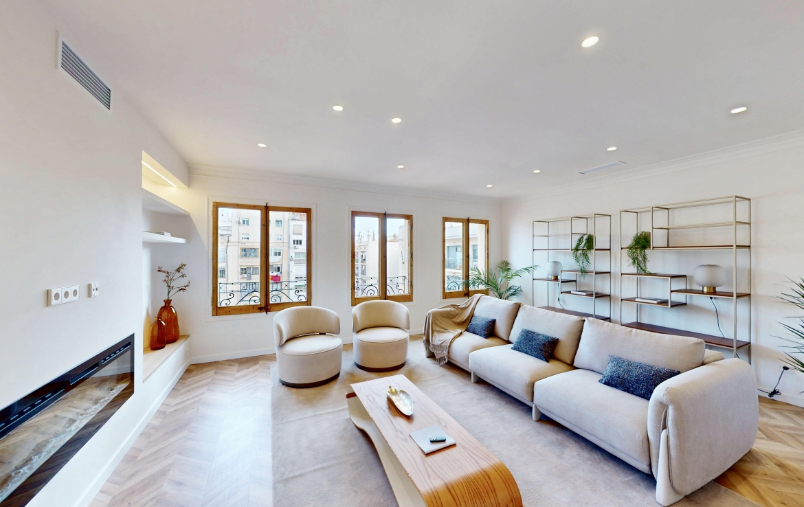 Appartement entièrement rénové de 146 m² construits (132 m² utiles) situé dans un immeuble datant de 1890.