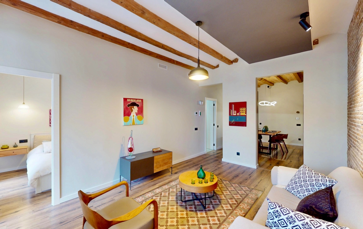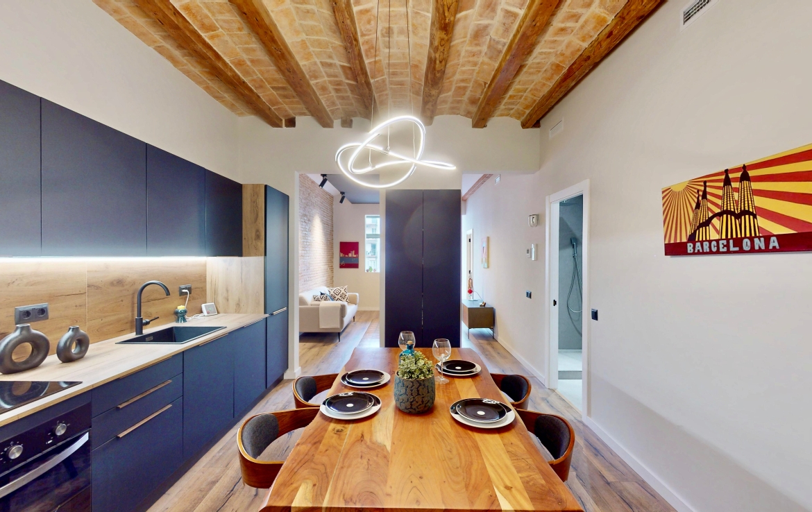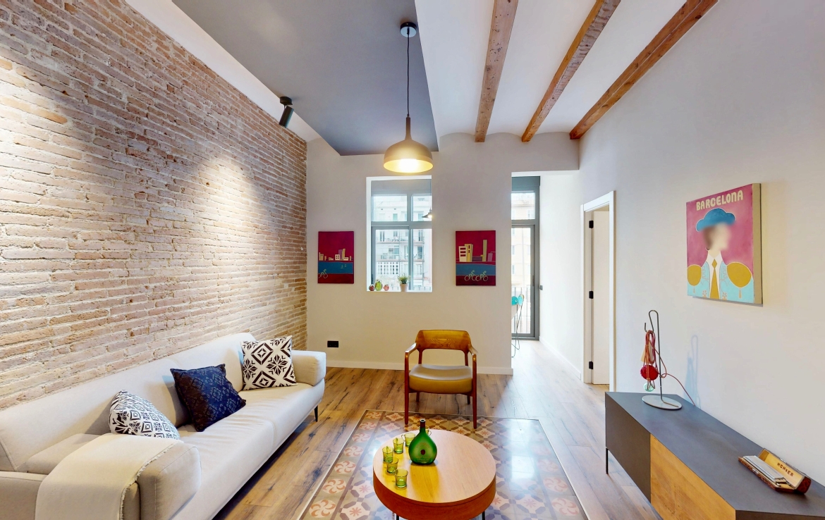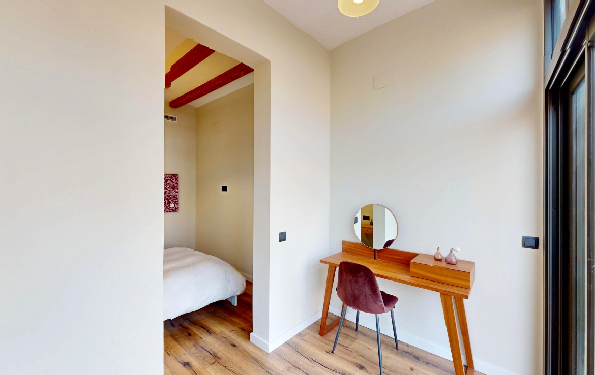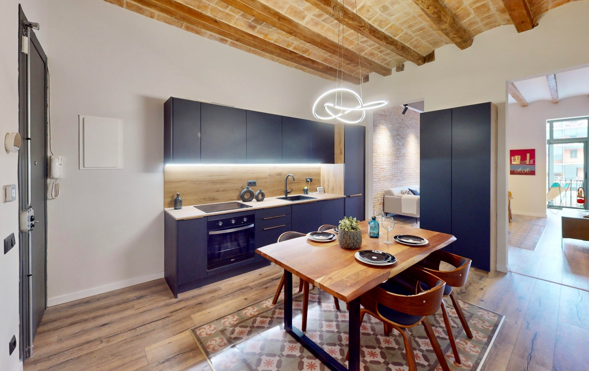 Entièrement rénové, il a conservé ses éléments d’origine : voûte catalane avec poutres en bois apparentes, carrelages hydrauliques et hauteur sous plafond de 3,04 m.