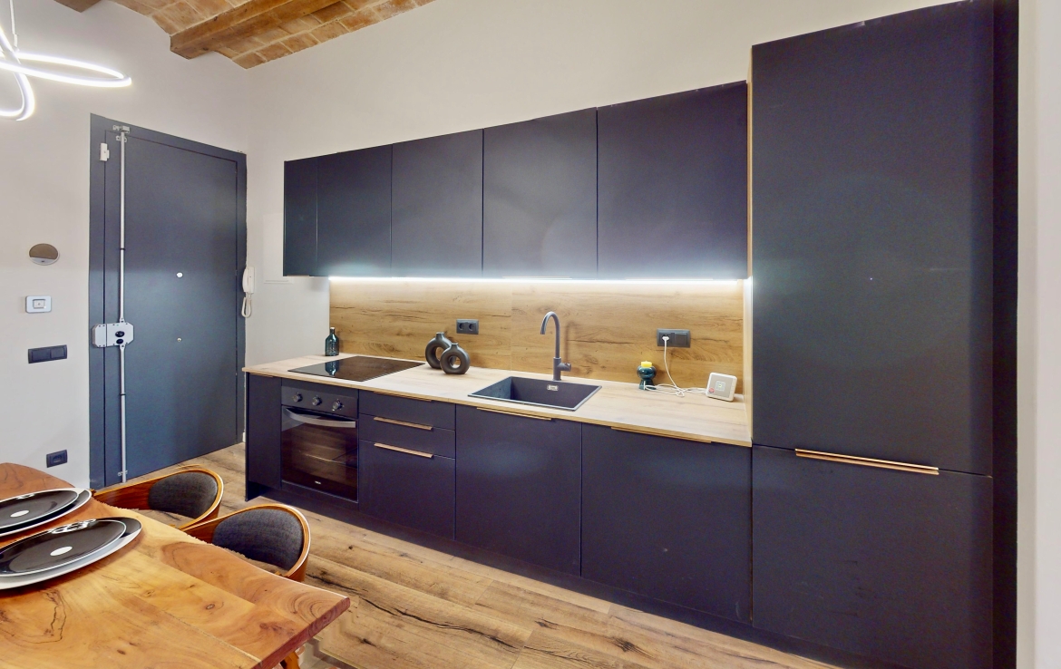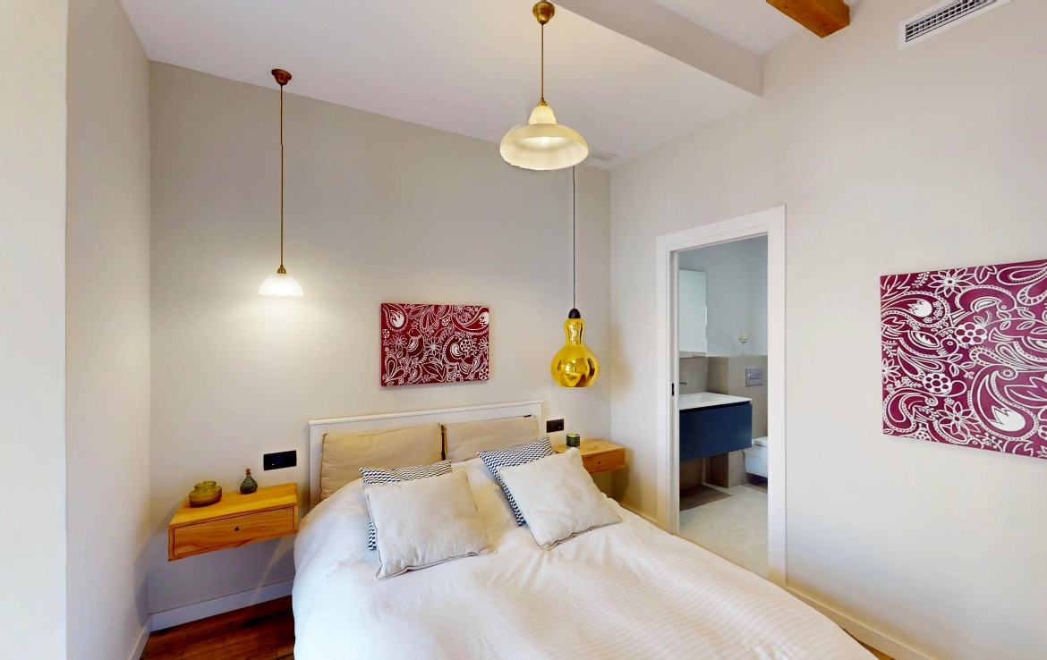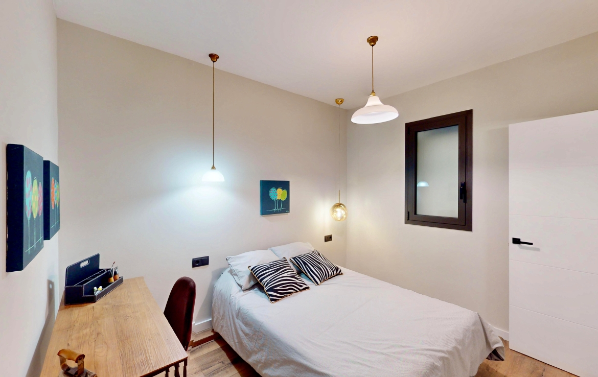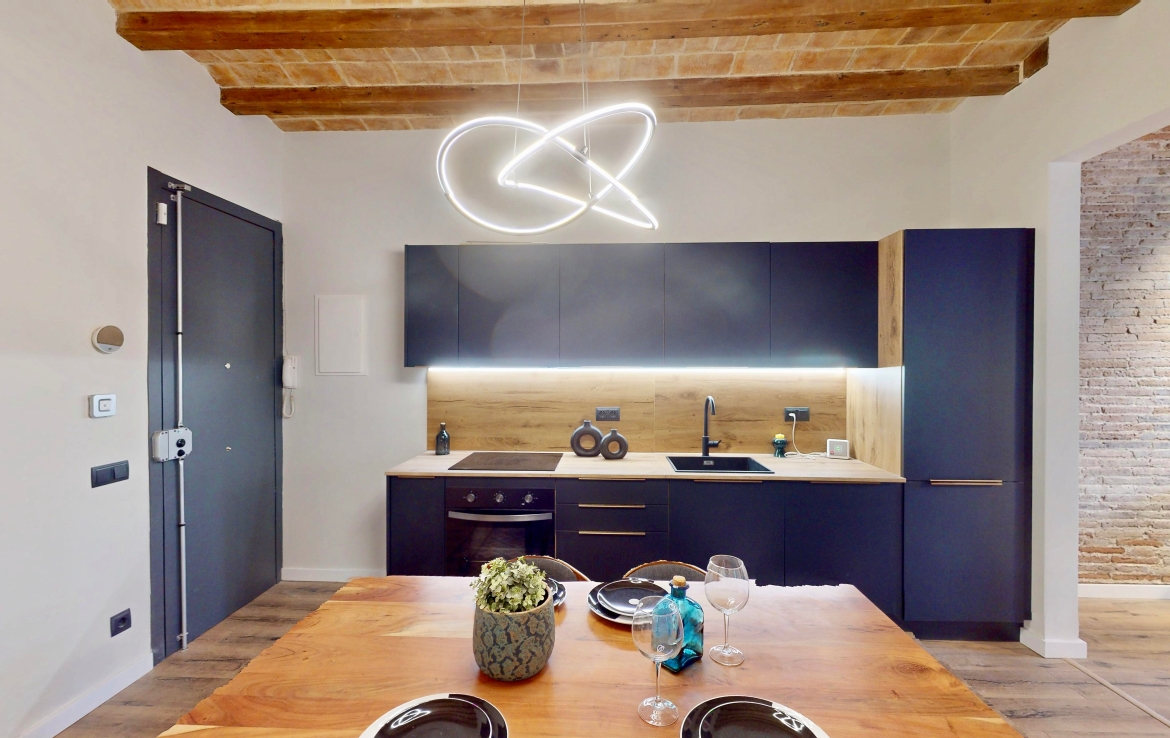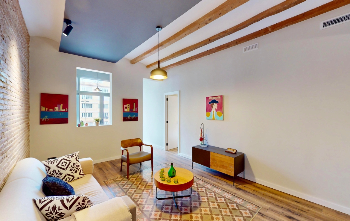 Entièrement rénové, il a conservé ses éléments d’origine : voûte catalane avec poutres en bois apparentes, carrelages hydrauliques et hauteur sous plafond de 3,04 m.